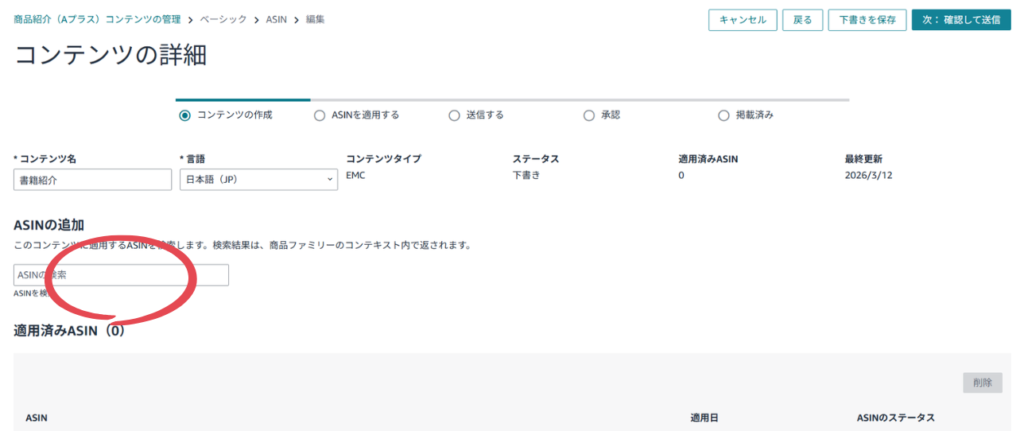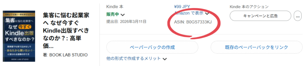作成が終わったら、この部分に該当の本のASINを入力します。