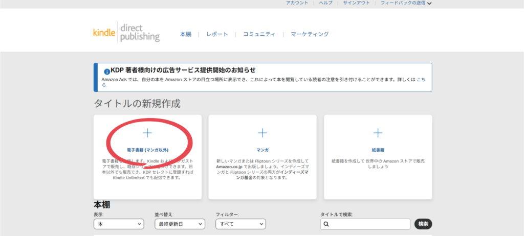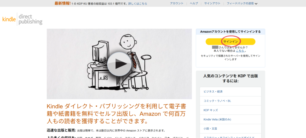まずは、KDP管理画面にログイン。