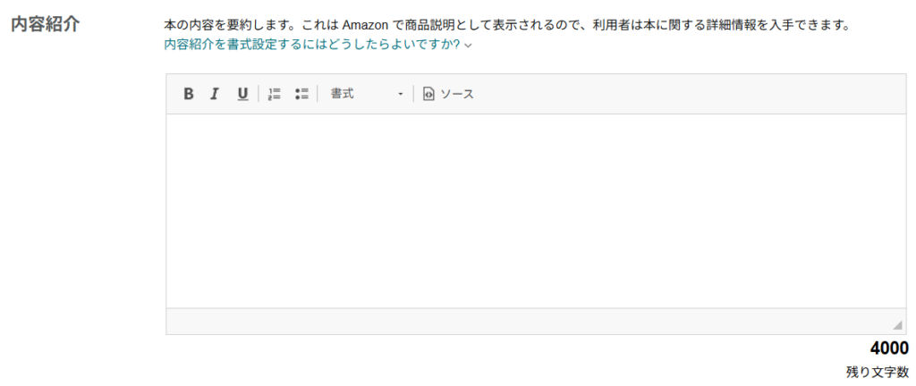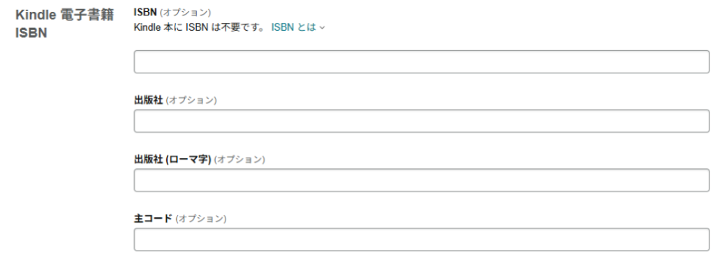 Kindle 電子書籍 ISBN」と「出版社」はいずれも空欄のままで大丈夫です。