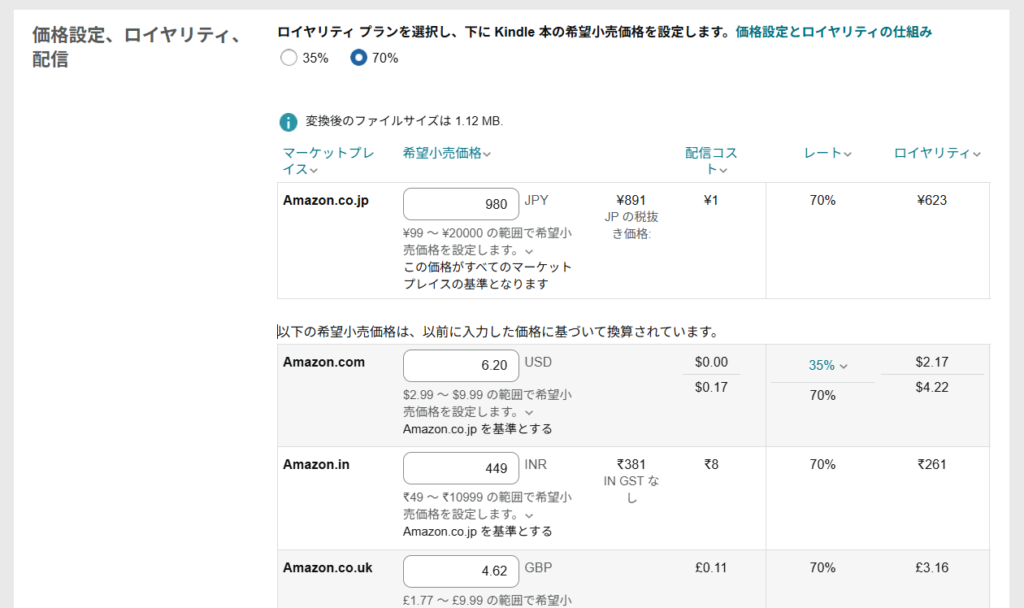 ③Kindle本の価格設定