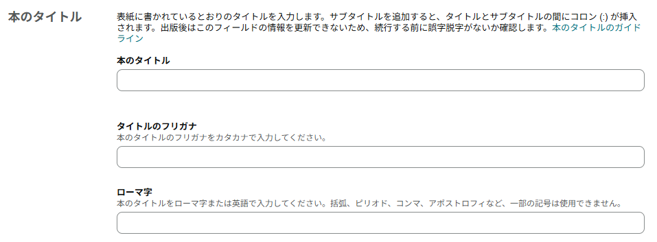 本のタイトル」「タイトルのフリガナ」「ローマ字」は必須入力項目です。