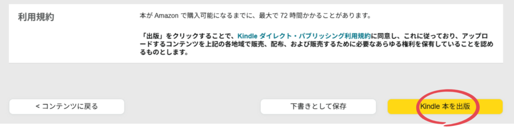 「Kindle本を出版」をクリックしたら入稿作業は完了です。