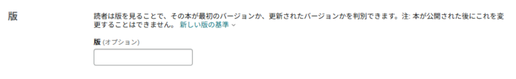 KDPの登録画面には「版」を入力する欄がありますが、必須ではありません。